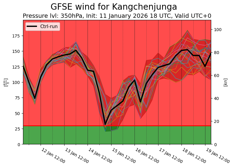 Wind 350hPa Forecast for Kangchenjunga in Himalaya